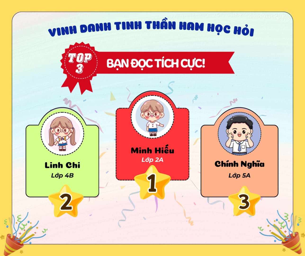 Nhà trường ghi nhận sự cố gắng, chủ động học tập của các bạn và hy vọng hoạt động này sẽ tiếp tục lan tỏa rộng rãi, giúp các bạn nhỏ yêu thích đọc sách hơn mỗi ngày.